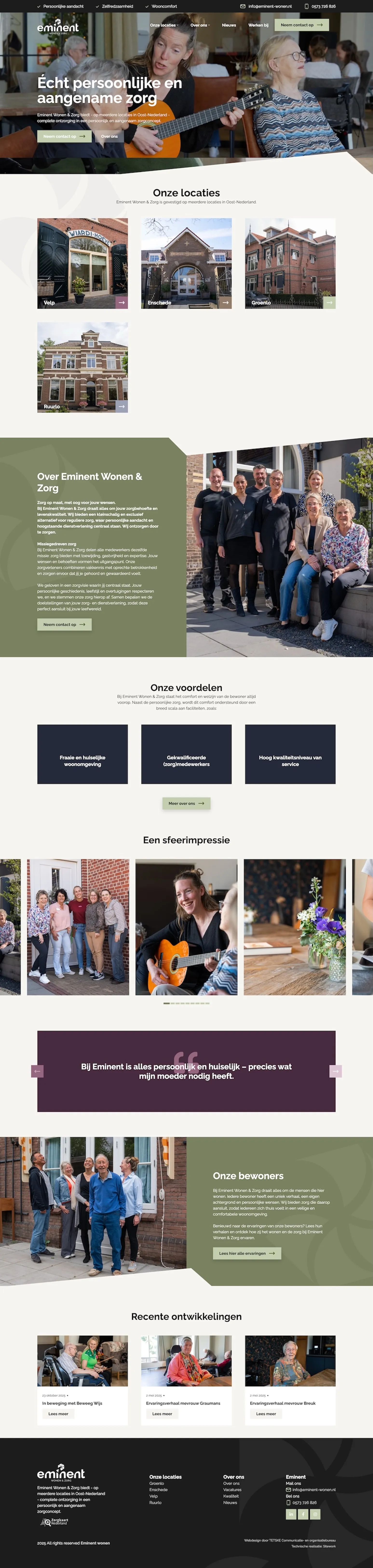 Eminent Wonen Wonen & Zorg Eminent Wonen & Zorg biedt - op meerdere locaties in Oost-Nederland - complete ontzorging in een persoonlijk en aangenaam zorgconcept. Ga terug Bekijk website